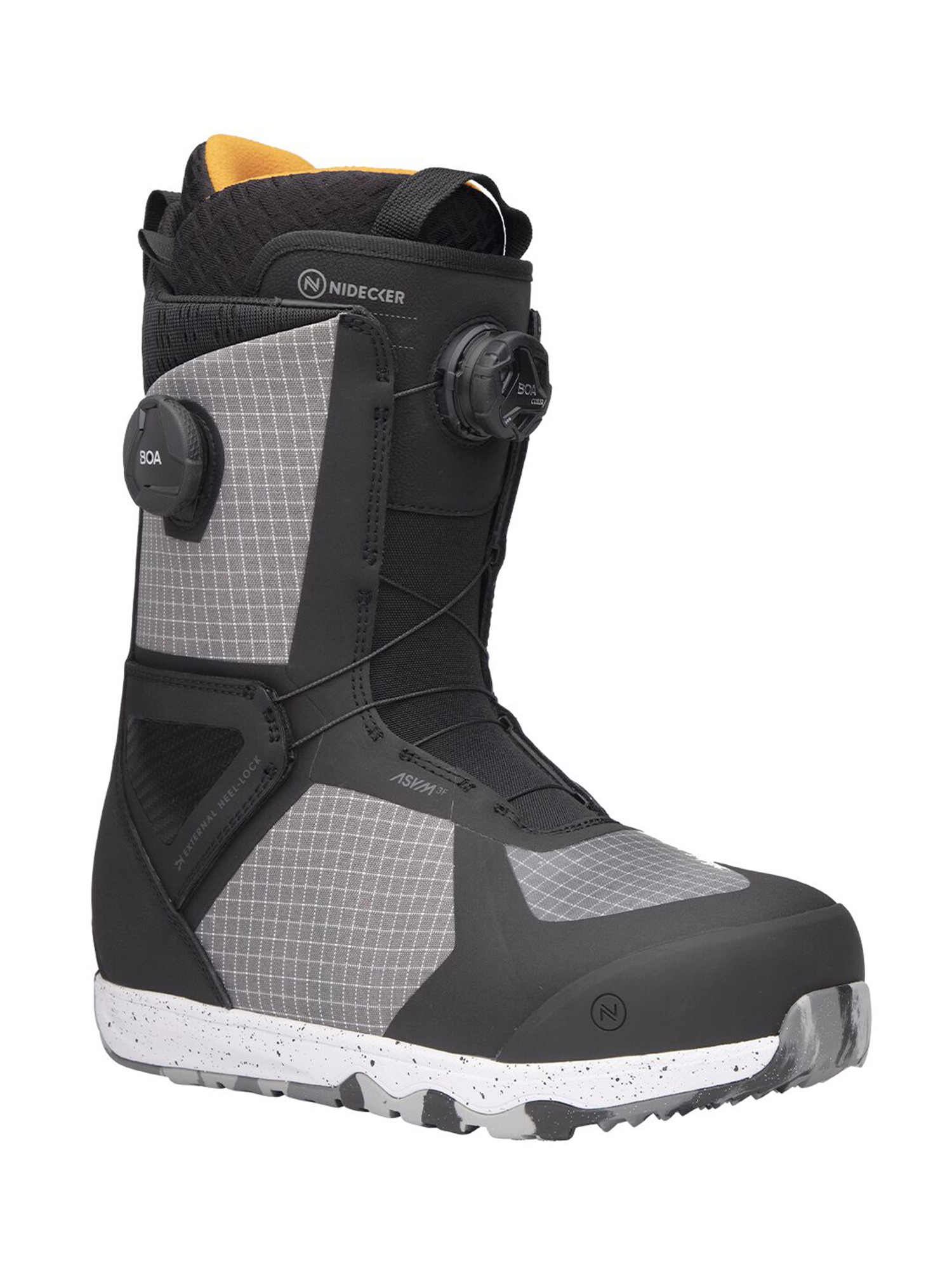 Asym 3F – ассиметричная конструкция ботинка идеально сочетается со стрепами креплений Nidecker и Flow, что исключает чрезмерное давление на стопу.