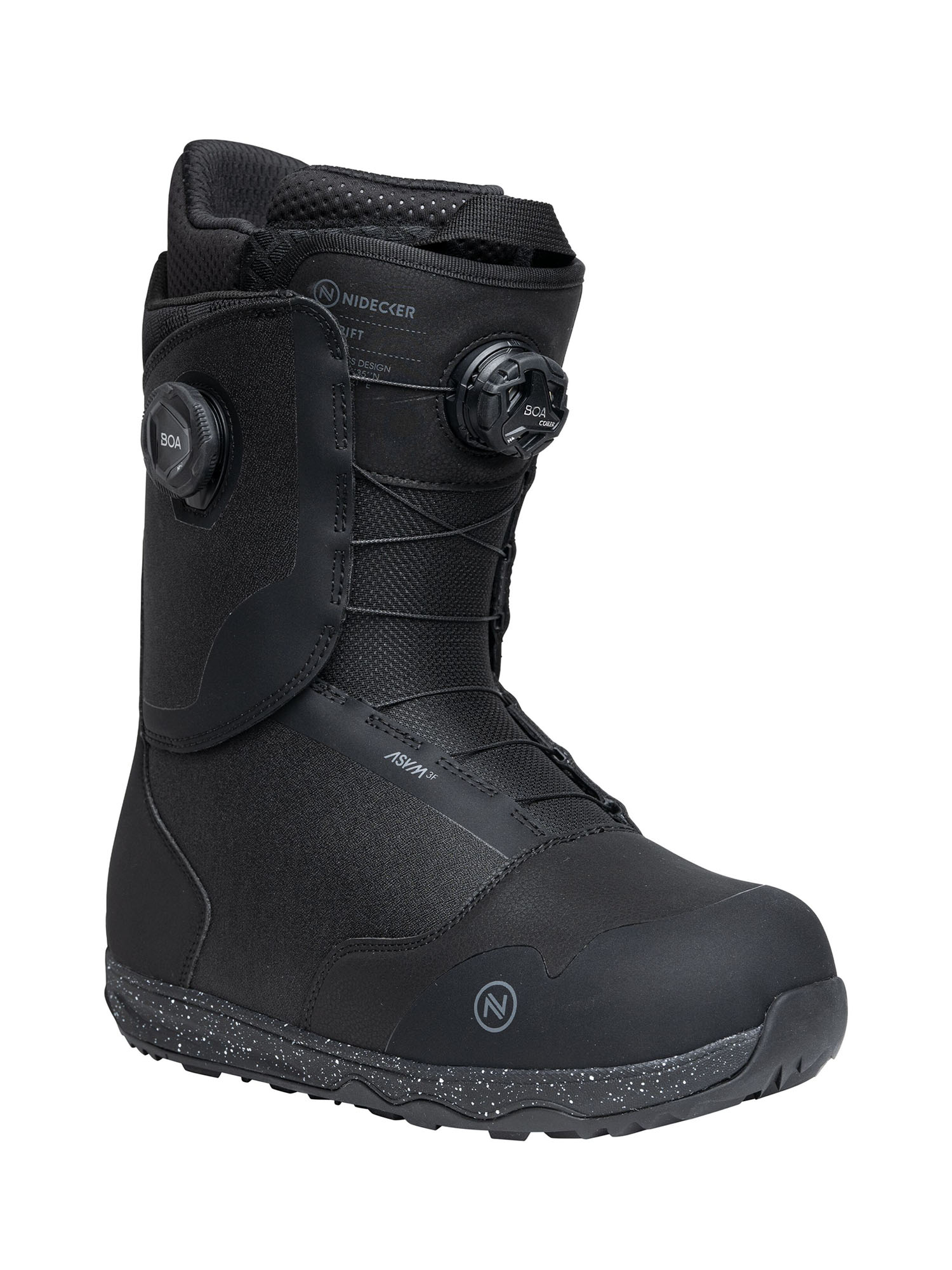 ASYM 3F – ассиметричная конструкция ботинка идеально сочетается со стрепами креплений Nidecker и Flow, что исключает чрезмерное давление на стопу.